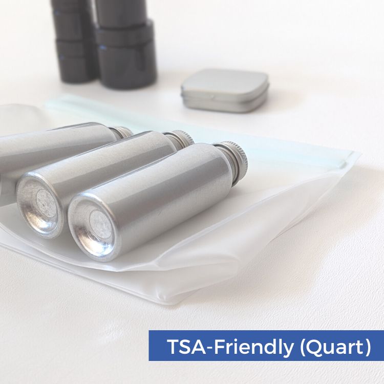 The TSA-Friendly Travel Set Contains: